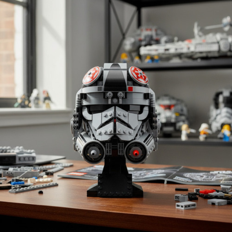 Com 730 peças, a montagem é envolvente, cheia de pequenos detalhes, e lembra a experiência dos capacetes oficiais da linha Helmet Collection, entregando um resultado final com cara de peça premium de colecionador.